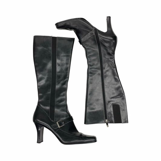 Boots Leather By Anne Klein In Black, Size:7.5