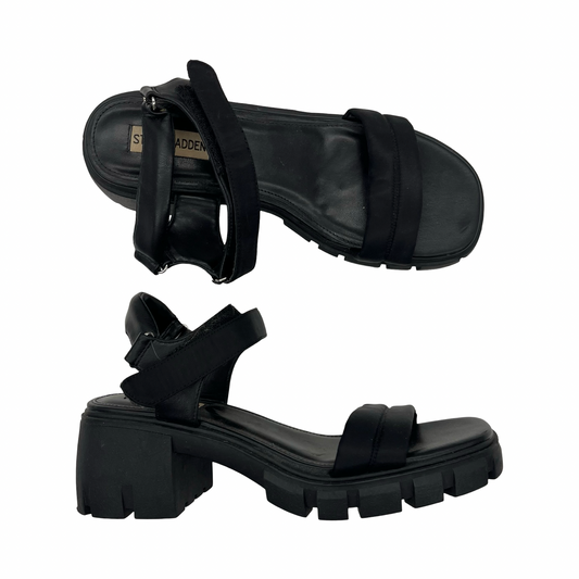 Sandals Heels Block By Steve Madden In Black, Size:9.5