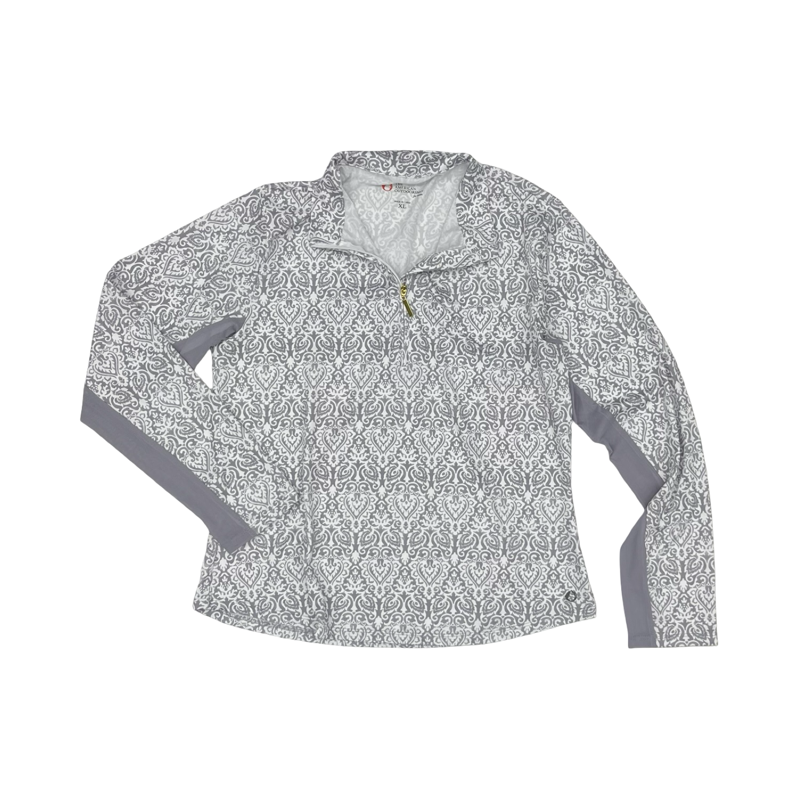Athletic Top Ls Collar By Clothes Mentor In Grey & White, Size:Xl
