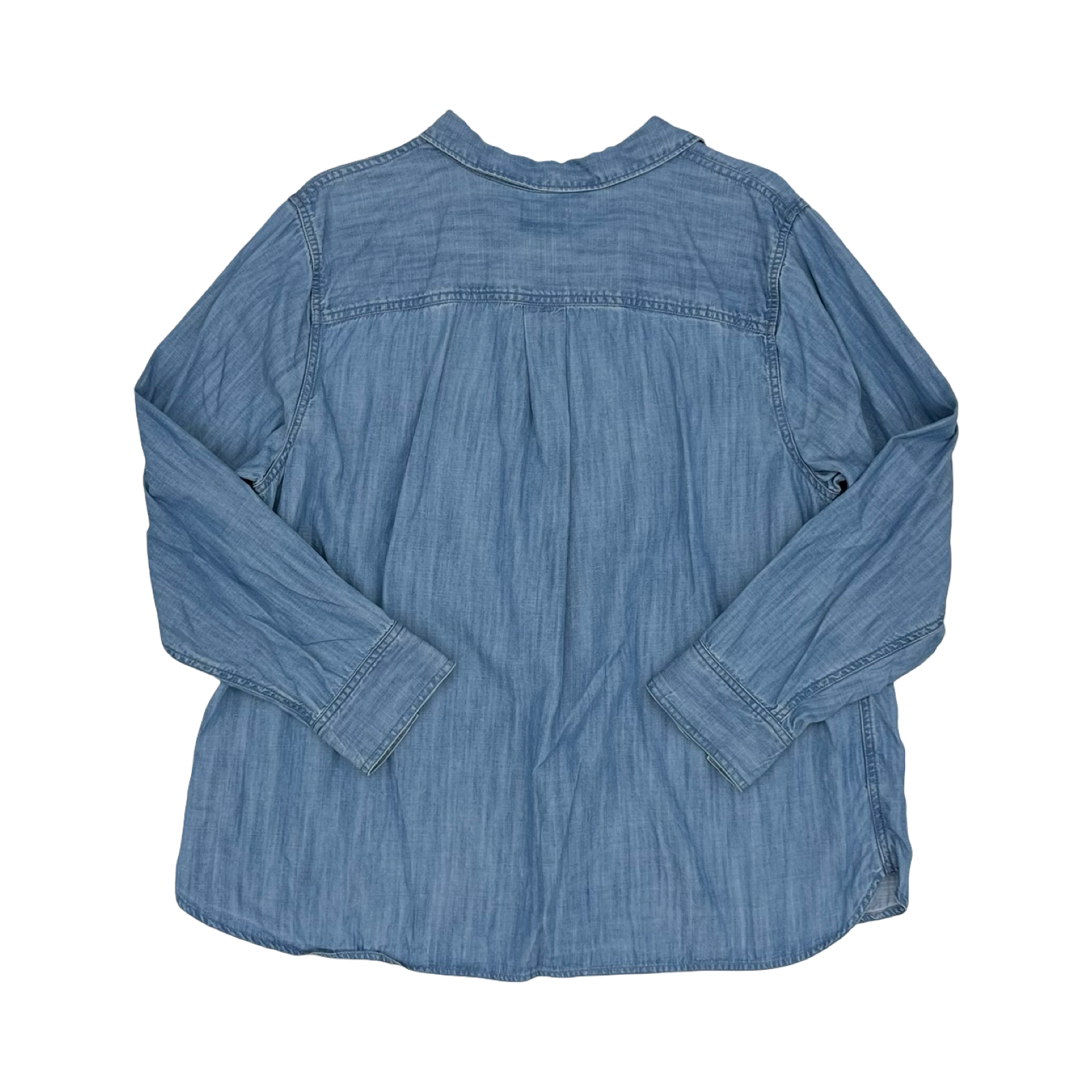Blouse Ls By Lands End In Blue Denim, Size:1X