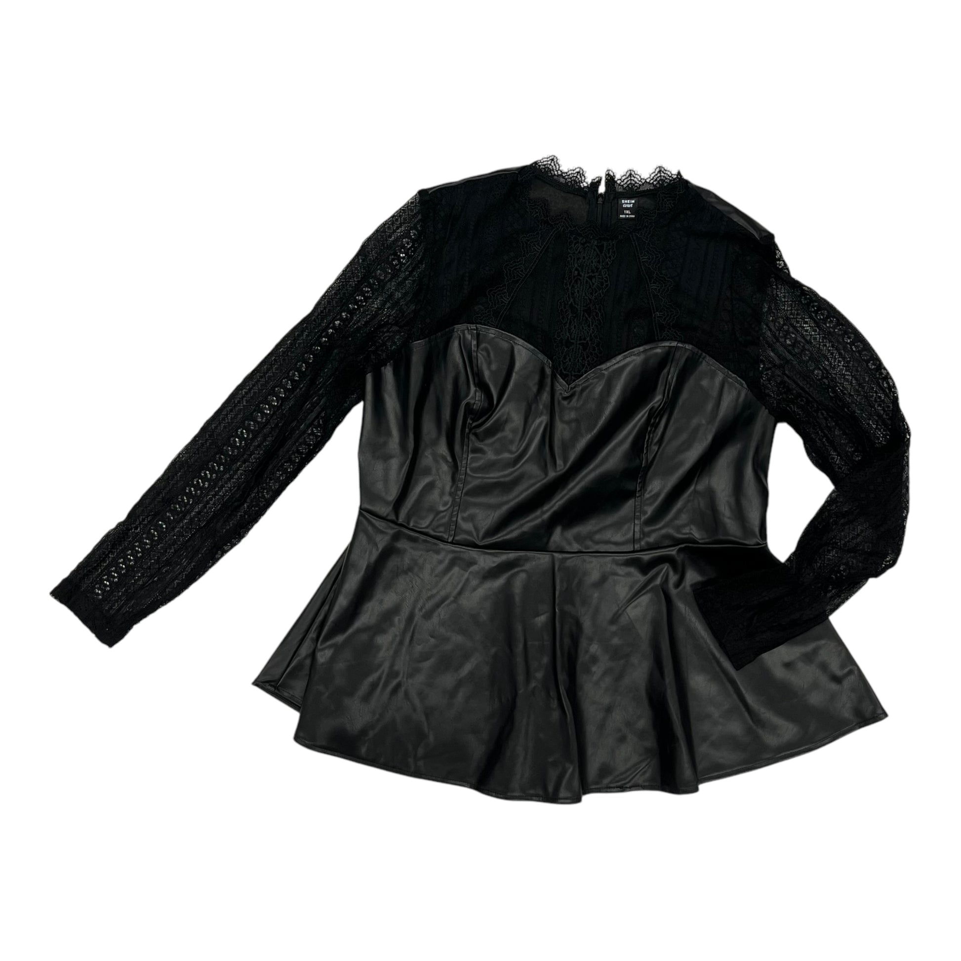 Blouse Ls By Shein In Black, Size:1X