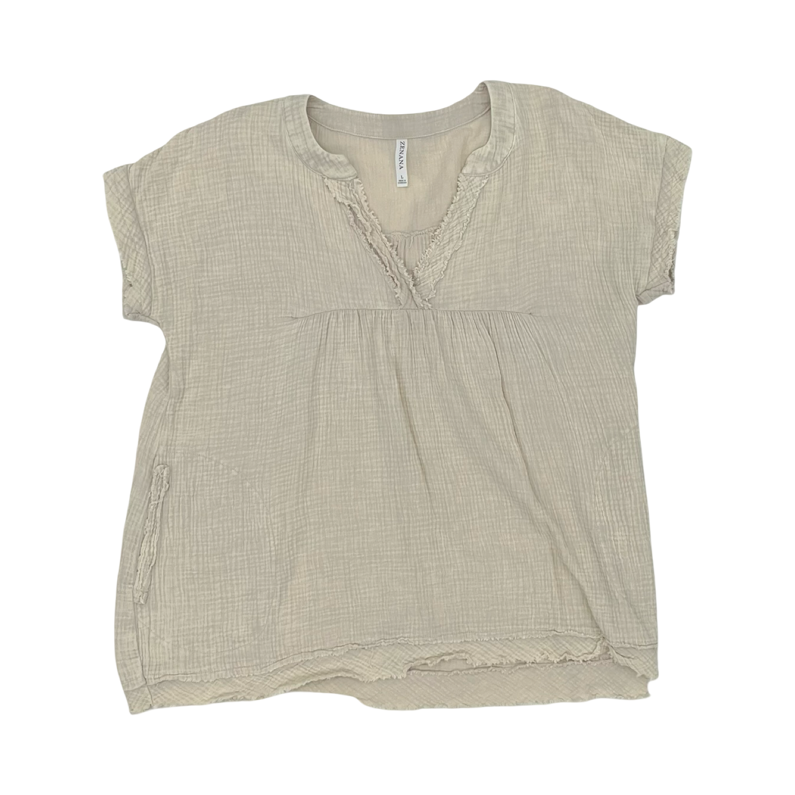 Blouse Ss By Zenana In Tan, Size:L