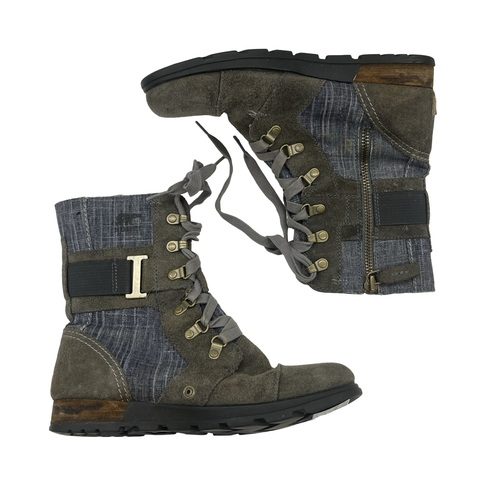 Feel effortlessly stylish in these Sorel ankle boots in green and grey, size 7.5. Chic design meets comfort for everyday wear.
