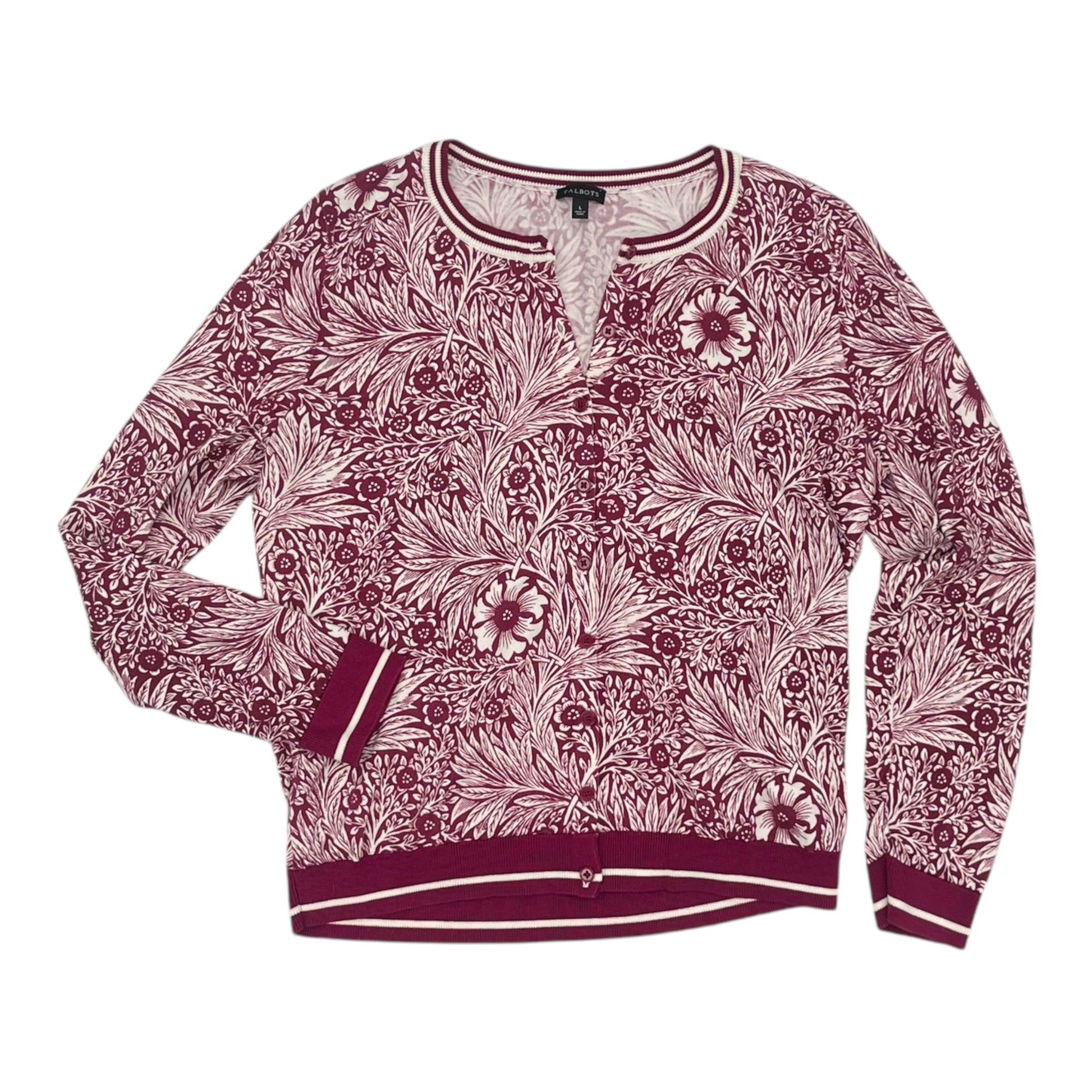 Elevate your style with a stunning Talbots cardigan in pink and white, size L. Luxurious fabric, impeccable fit, and timeless charm. Own it today!