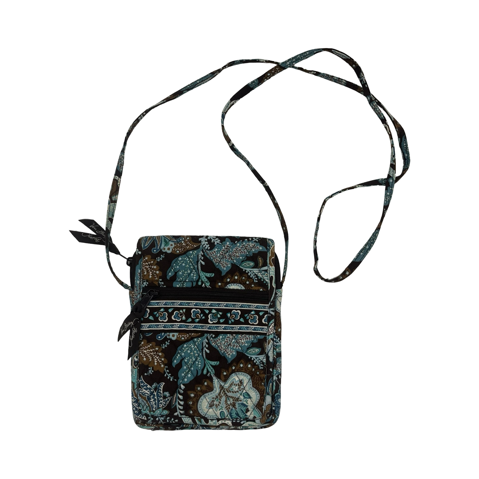 Chic Vera Bradley crossbody in small blue and brown design. Stylish essential.