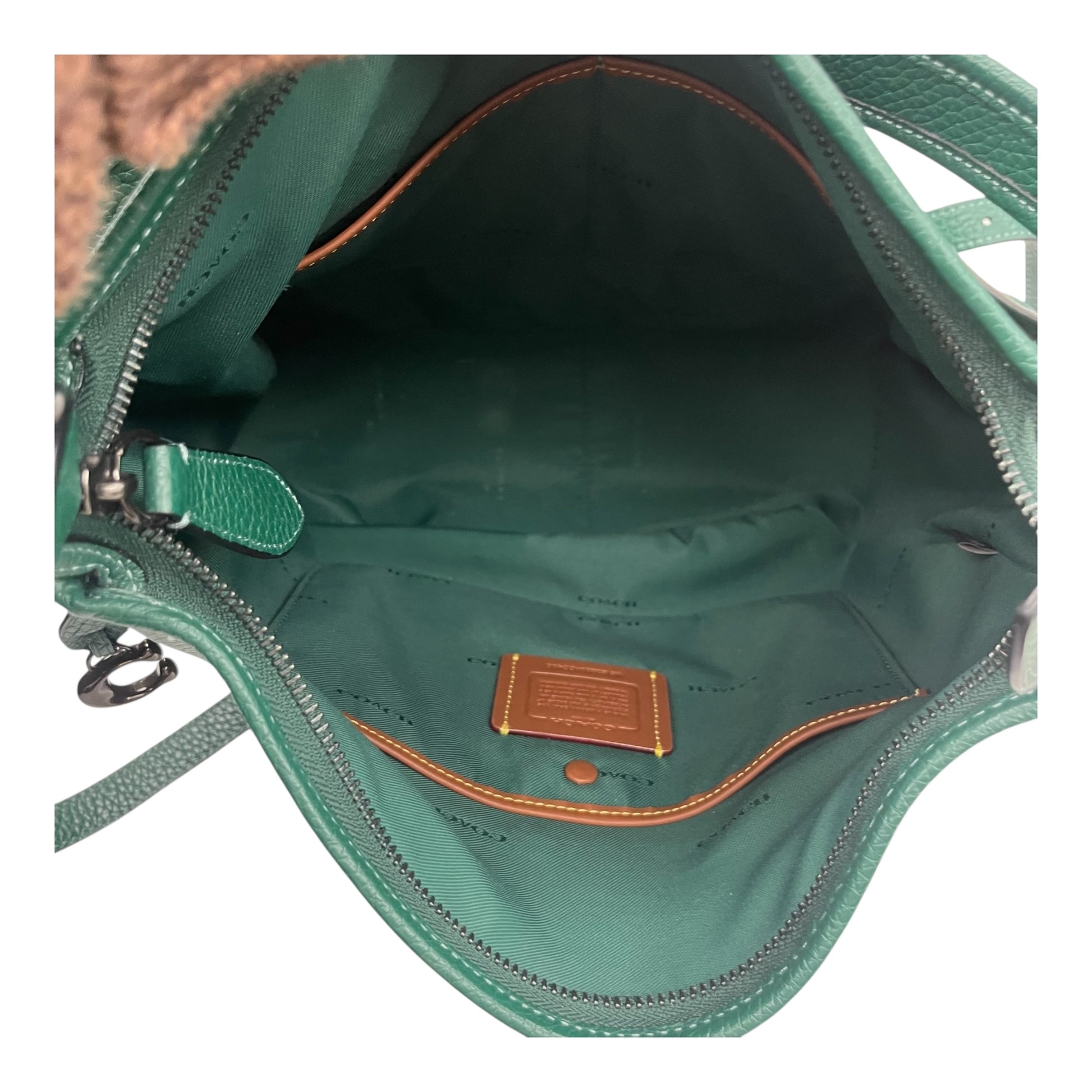 Experience timeless elegance with this Coach Designer Handbag in medium green. Crafted for sophistication, style, and functionality. A must-have accessory.