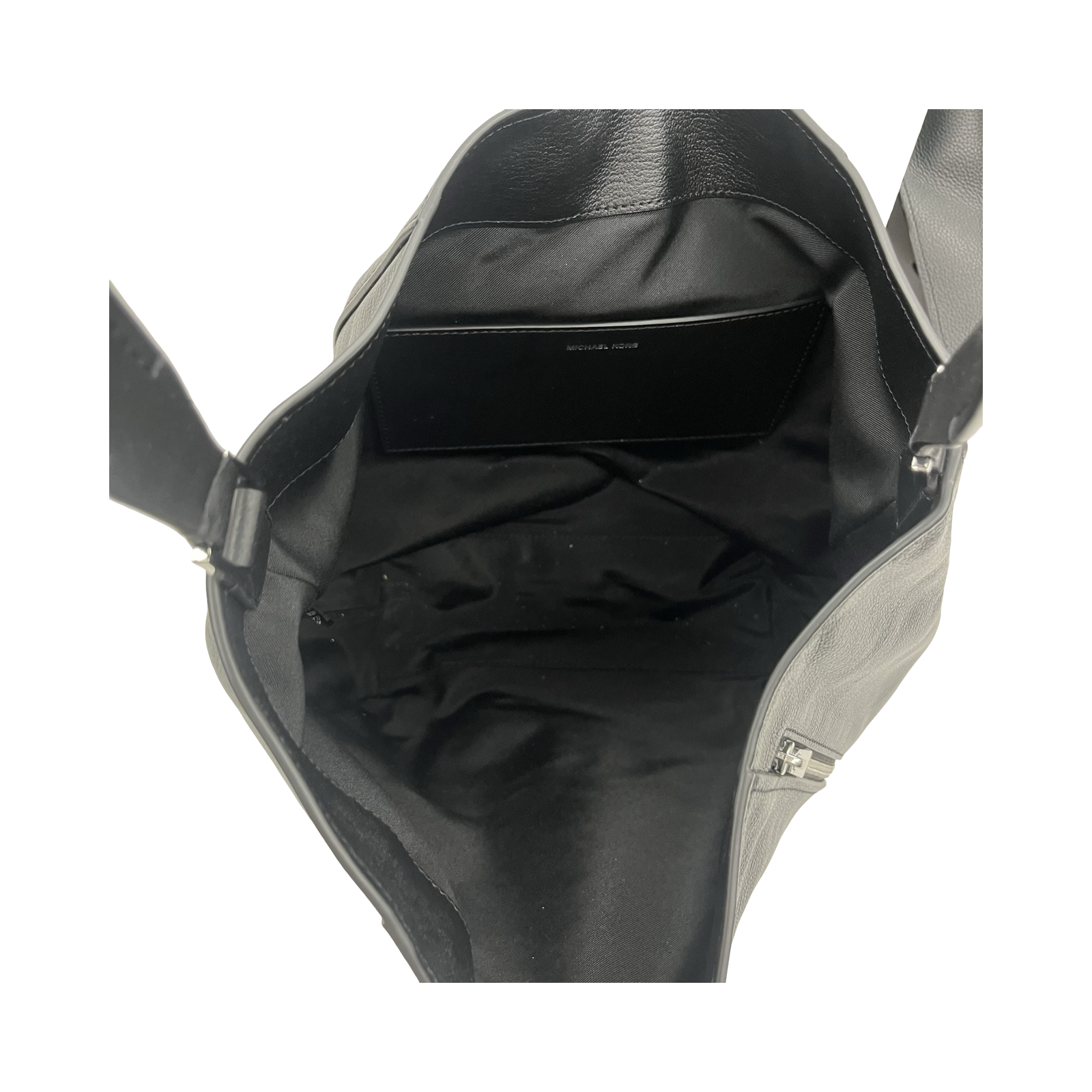 Unleash your fashionista flair with this large black Michael Kors handbag. Luxurious design, ample space, and undeniable sophistication. Perfect for on-the-go chic!