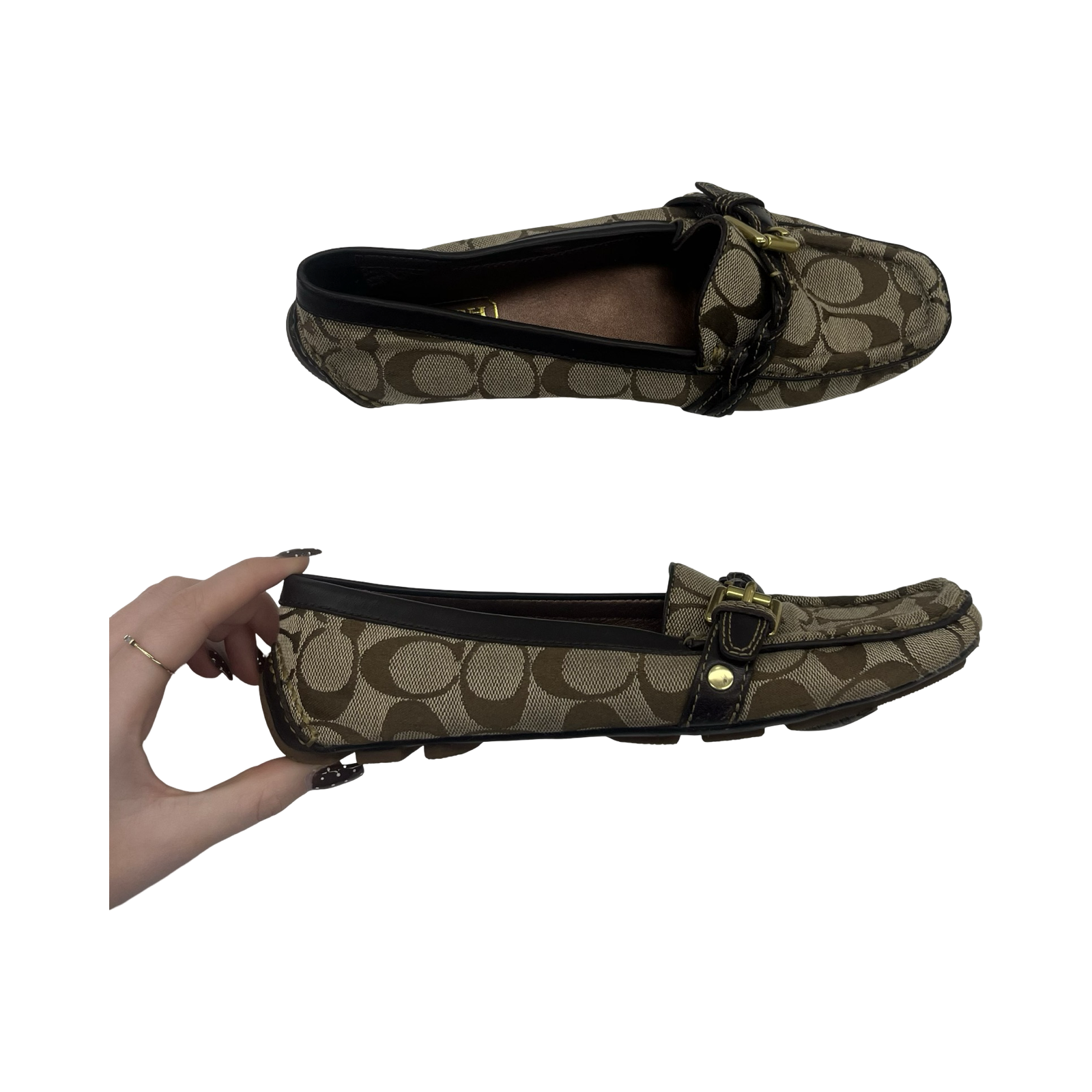 Indulge in the exquisite allure of these Coach Brown Designer Shoes in size 6.5. Crafted with unparalleled attention to detail, these shoes exude sophistication and elevate your ensemble effortlessly. Step into luxury.