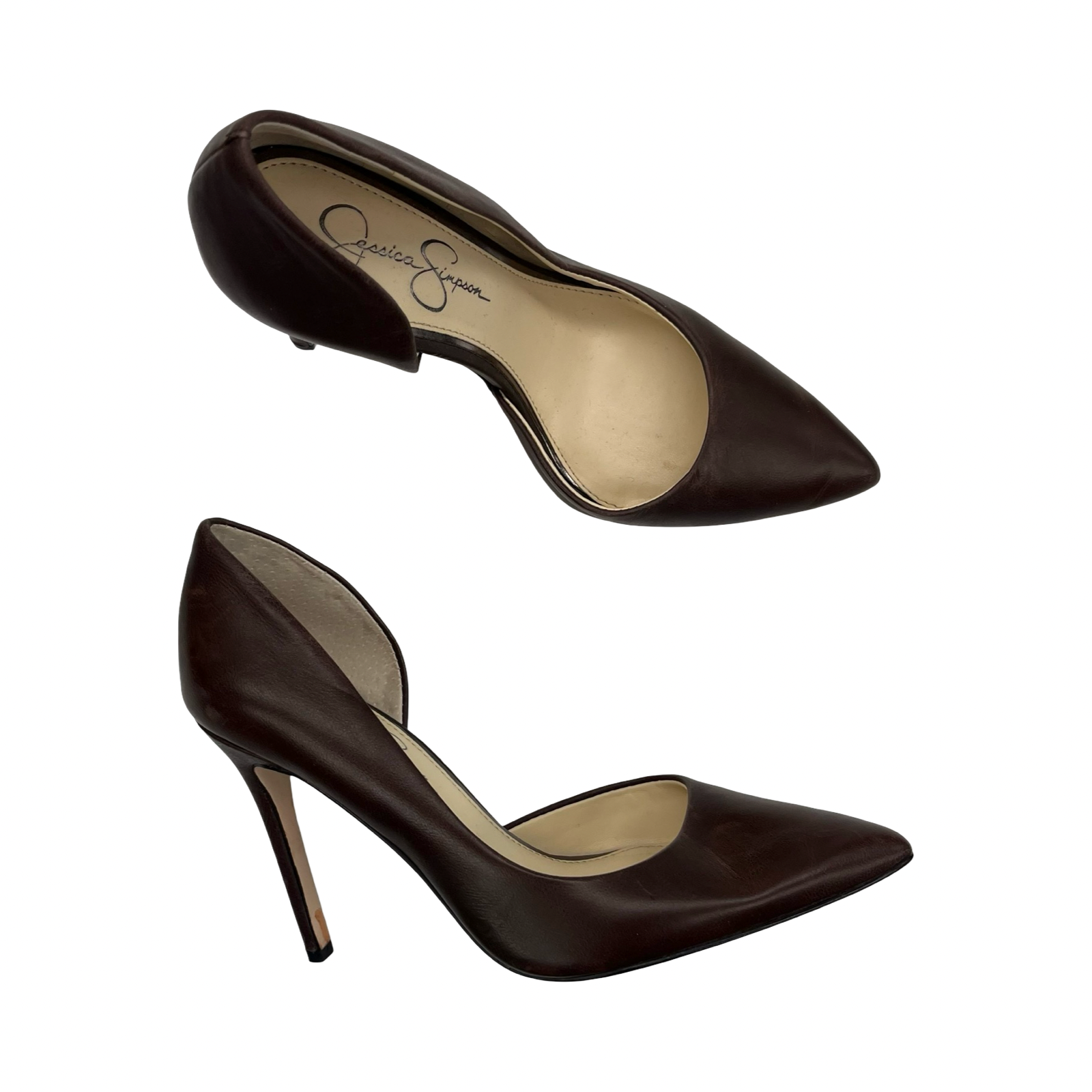 Step into sophistication with Jessica Simpson's brown stiletto heels, size 7. Elegance meets comfort effortlessly.