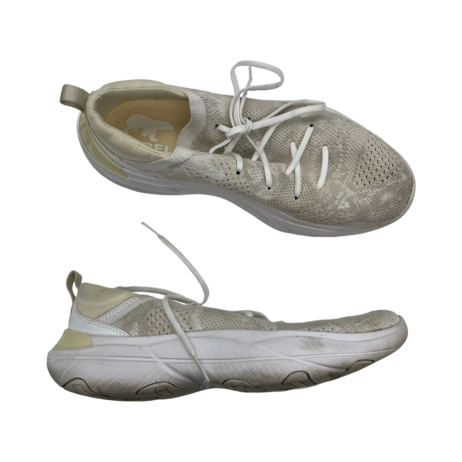 Sorel Cream Sneakers, Size 9, exude timeless elegance with premium quality fabric for comfort and style. Elevate your outfit effortlessly with these classic, versatile shoes.