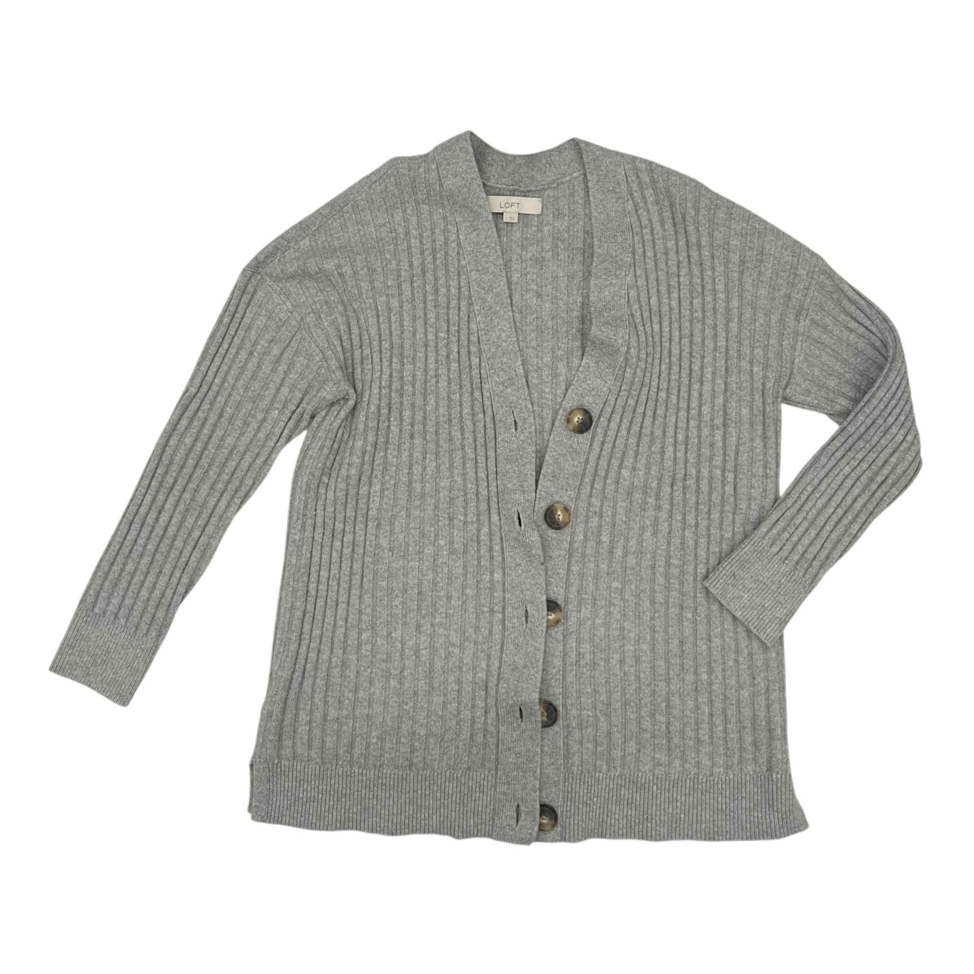 Sweater Cardigan By Loft In Grey, Size:L