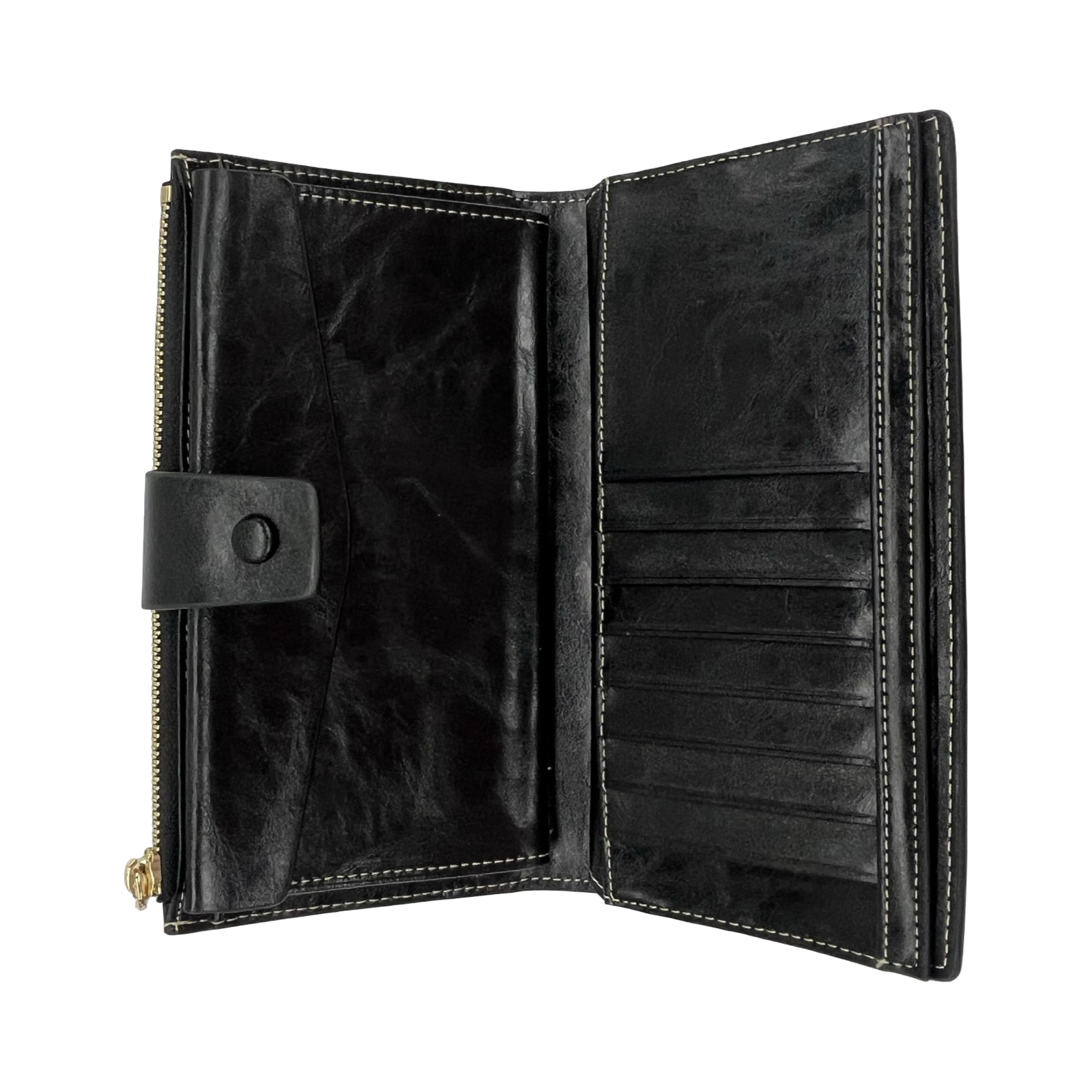 Chic black wallet: holds cash, cards, and your shopping secrets.